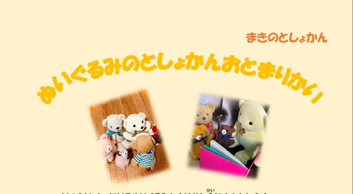 いつもいっしょにいるぬいぐるみとおはなしかいをたのしんだあと、ぬいぐるみだけとしょかんにおとまりします。