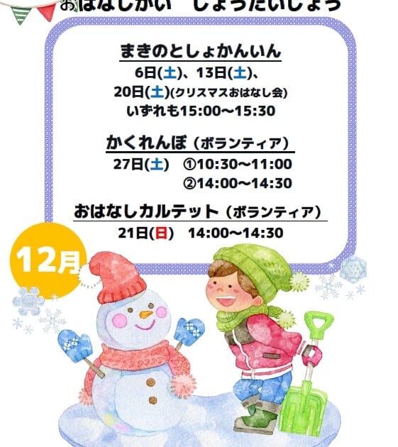 ◆12月20日(土)15:00~(クリスマスおはなし会)