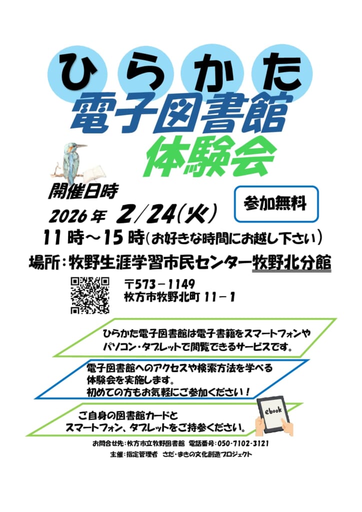 ひらかた電子図書館は電子書籍をスマートフォンやパソコン・タブレットで閲覧できるサービスです。